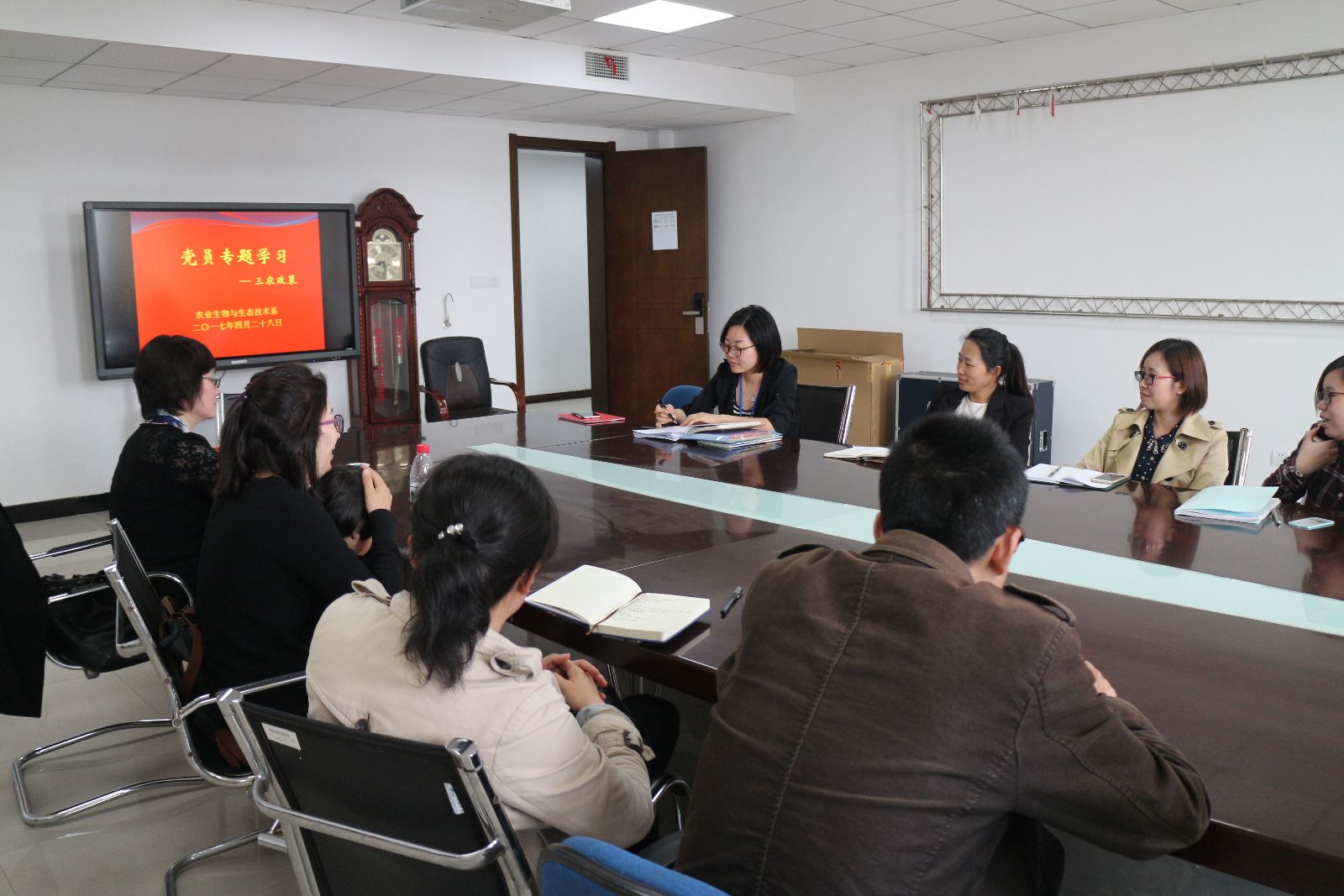 4月28日,农业生物与生态技术系在综合楼807开展党员专题学习。支部书记蒋洁传达2017年中央1号文件精神,并组织全体党员观看视频《聚焦三农》之九问两会,引导广大党员了解三农,关注三农,服务三农。