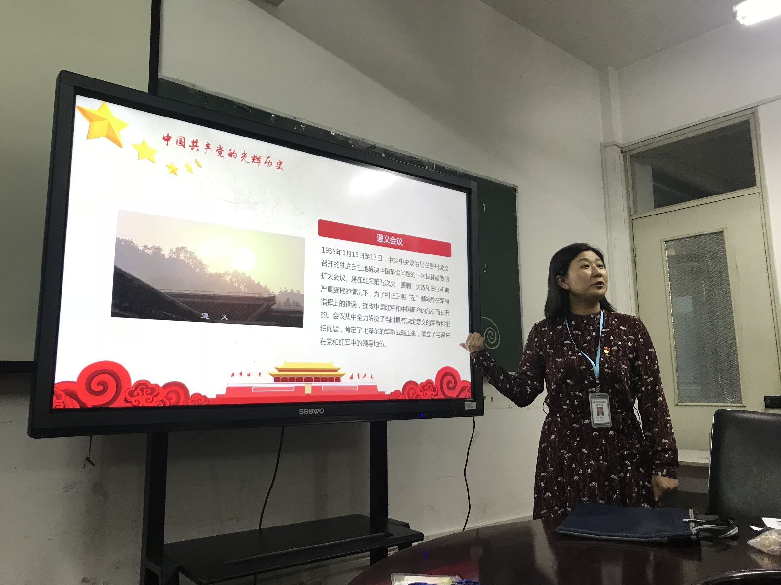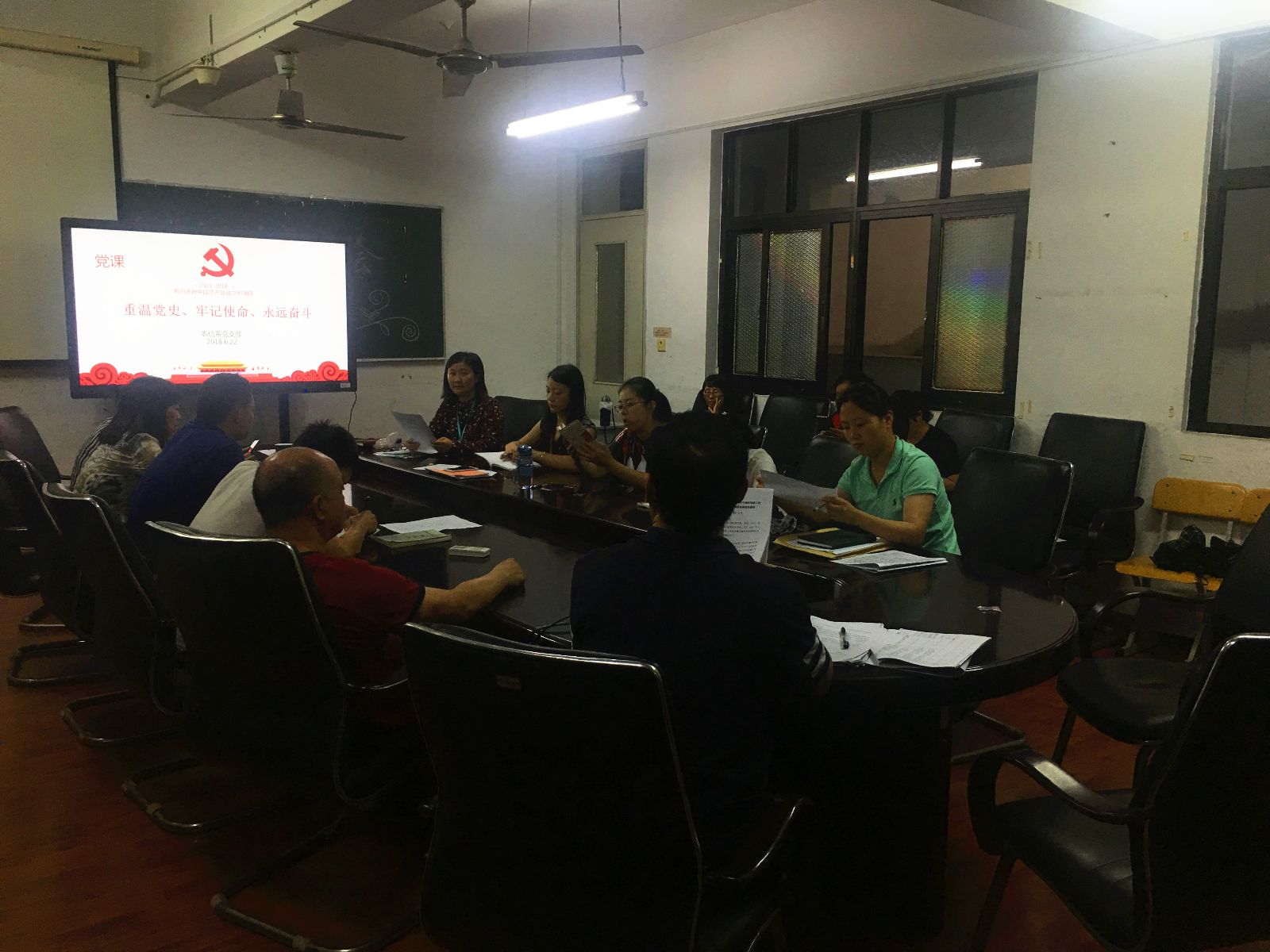 党支部书记袁少英给支部全体党员上了一堂党课,题为《重温党史,牢记使命,永远奋斗》。