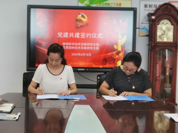 为深入学习贯彻落实习近平新时代中国特色社会主义思想,更好地落实“四史”学习教育,全面贯彻新时代党的建设总要求,不断激发党组织建设新活力,不断提升党支部的组织力、凝聚力、战斗力。植科系全国党建工作样板党支部和园林系“双带头人”党支部于6月18日在809会议室签署党建共建协议书。