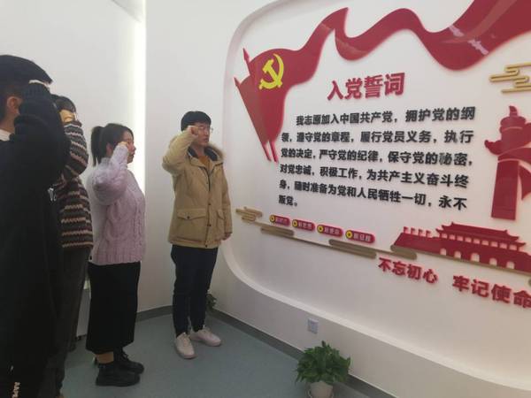 根据《中国共产党章程》要求和《中国共产党发展党员工作细则》相关规定,结合发展党员工作需要,支部组织3名预备党员进行宣誓。面向入党誓词,预备党员怀着激动的心情,高举右拳,神情肃穆,铿锵有力地宣读入党誓词,表达对党的忠诚。